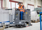Smidig, batteridriven åkbar skurmaskin med 170 Ah batteri, batteriladdare, högpresterande sugramp och borstvalshuvud med 75 cm arbetsbredd samt 110 liters tankar.