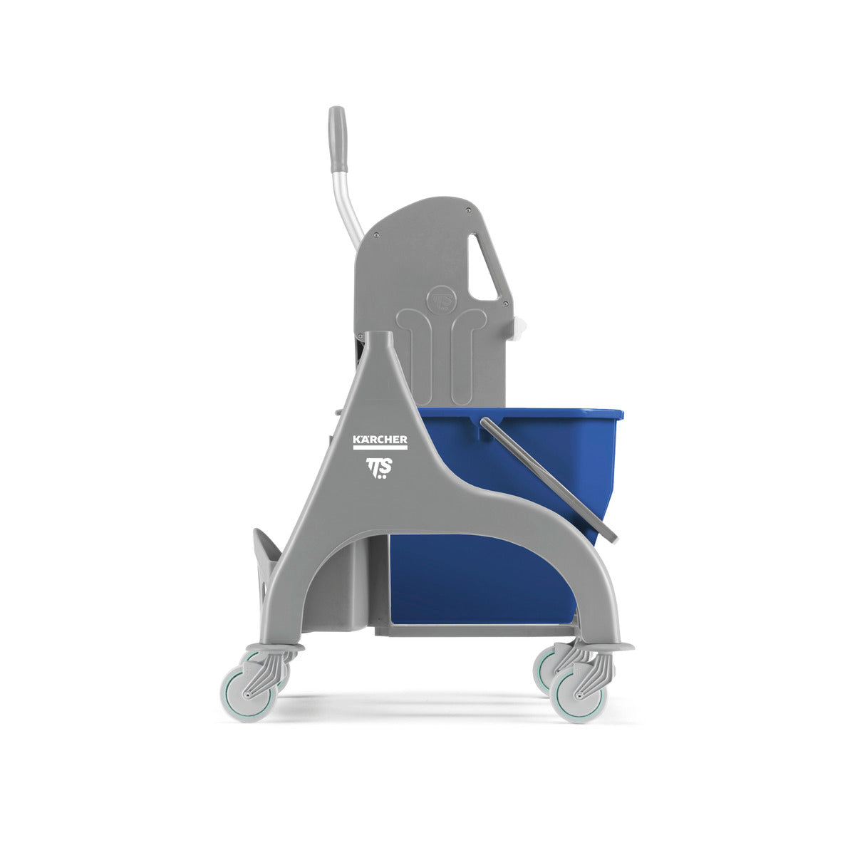 Mobil svabbvagn med en styck blå 25 liters hink och en användarvänlig press.