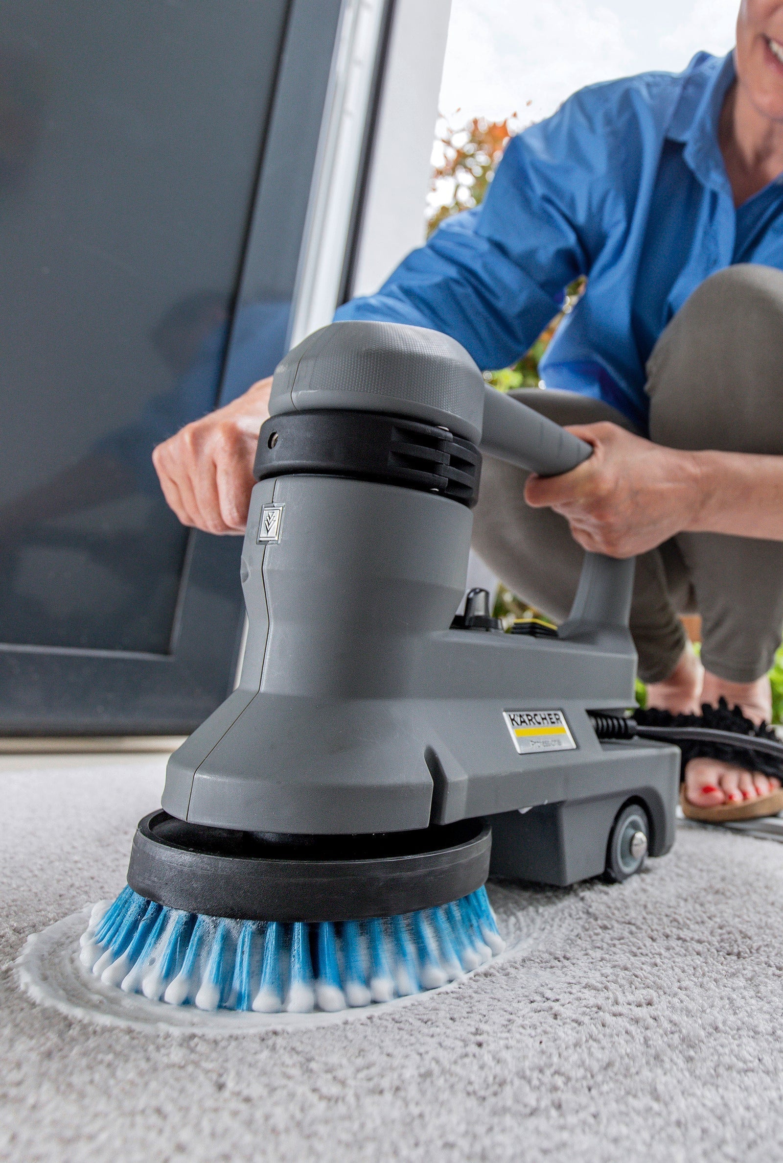 Tack vare en kompakt design (33 cm x 17-20 cm x 29 cm) är den nätdrivna skurmaskinen BD 17/5 C också möjlig att använda där traditionella skurmaskiner inte går att nyttja på grund av att dom är för stora och manuell rengöring är för svårt och kostsamt. Rengöringsföretag, fastighetsskötare och kommunala fastighetsägare som arbetar där den här typen av behov finns kommer med lätthet hitta användningsområden för den här maskinen. Lättillgängliga funktioner garanterar en snabb och komfortabel användning. Med en hastighetskontroll för varvtalet (0 - 450 rpm) och tillbehör kan maskinen optimeras för respektive behov som till exempel djuprengöring, kristallisering, polering av hårda ytor samt schamponering av texila ytor. I synnerhet vid trappstädning där man med maskinen samtidigt kan rengöra trappstegen och sättstegen så här tidsbesparingen och enkelheten extra tydlig. Maskinkroppen är tillveerkad av en stabil och slagtålig typ av plast. Borsten kan bytas mot rondellhållare på några sekunder och utan verktyg. Tack vare de två handtagen kan maskinen trots sin vikt på 5 kg enkelt och säkert hanteras av användaren.
