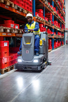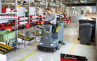 The reliable B 110 R model is a ride-on floor scrubber with a 160 Ah lithium iron phosphate battery, integrated battery charger, side scrubber deck and DOSE detergent dosing system.