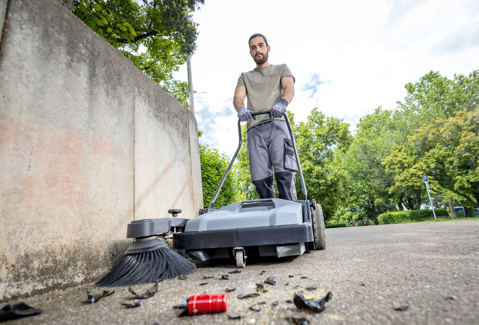 The compact KM 70/15 C Classic manual sweeper is always ready to quickly sweep both small and large areas efficiently. It can be used both indoors and outdoors.