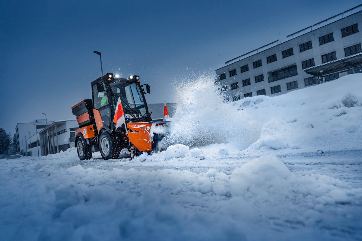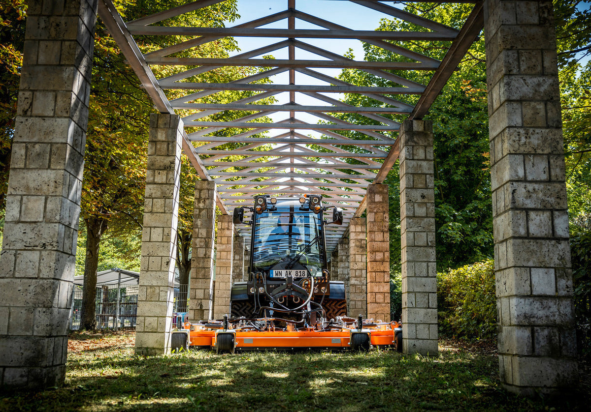 The C 55 SC is a faithful companion, whether for gardening or winter maintenance. The machine works equally well both on and off the road and has all the features we expect from multifunctional utility vehicles from Holder: The frame steering guarantees optimal manoeuvrability, precision and stable driving direction. Less effort is required for manoeuvring, which enables precision work close to edges while ensuring that the ground is not damaged. This is a compact work vehicle with 3 attachment areas that enables versatile use. Several work steps can be carried out at the same time and are controlled from the spacious and comfortable driver's cab. The impressive hydrostatic four-wheel drive allows the speed to be controlled completely steplessly and without jerks. Spring elements on the front and rear axles create a smooth ride even when driving off-road. An important safety feature of the C 55 SC is the load compensation on the wheels: This means that all 4 wheels always have contact with the ground, even on steep and uneven terrain or when driving over obstacles.