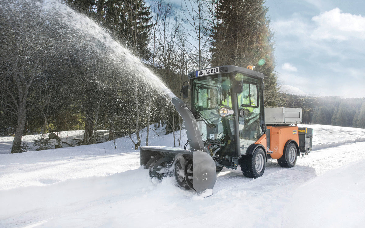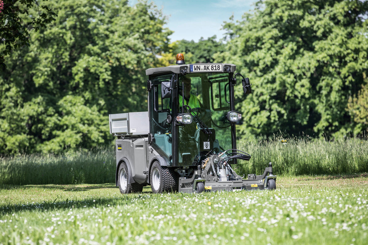 Thanks to the latest diesel technology, common rail direct injection and a particulate filter, the MIC 35 implement carrier can be used in urban environments. Its efficient 35 horsepower engine is well below the emission limits for STAGE V and impresses with its economic efficiency. The MIC 35 has a smart overall concept that impresses down to the smallest detail. The large comfort cab with panoramic view and clearly arranged controls, tool-free access to all service areas and the various implement integration options are just a few of the proofs of this. Front implements are easily mounted using the standard three-point linkage, rear implements are installed without stress using the quick-coupling system with hydraulic tilt frame. A multi-coupling for quick and drip-free coupling of the hydraulics is also available as an option, as well as a 35 horsepower engine variant that meets the requirements of the STAGE IIIA emission standard.