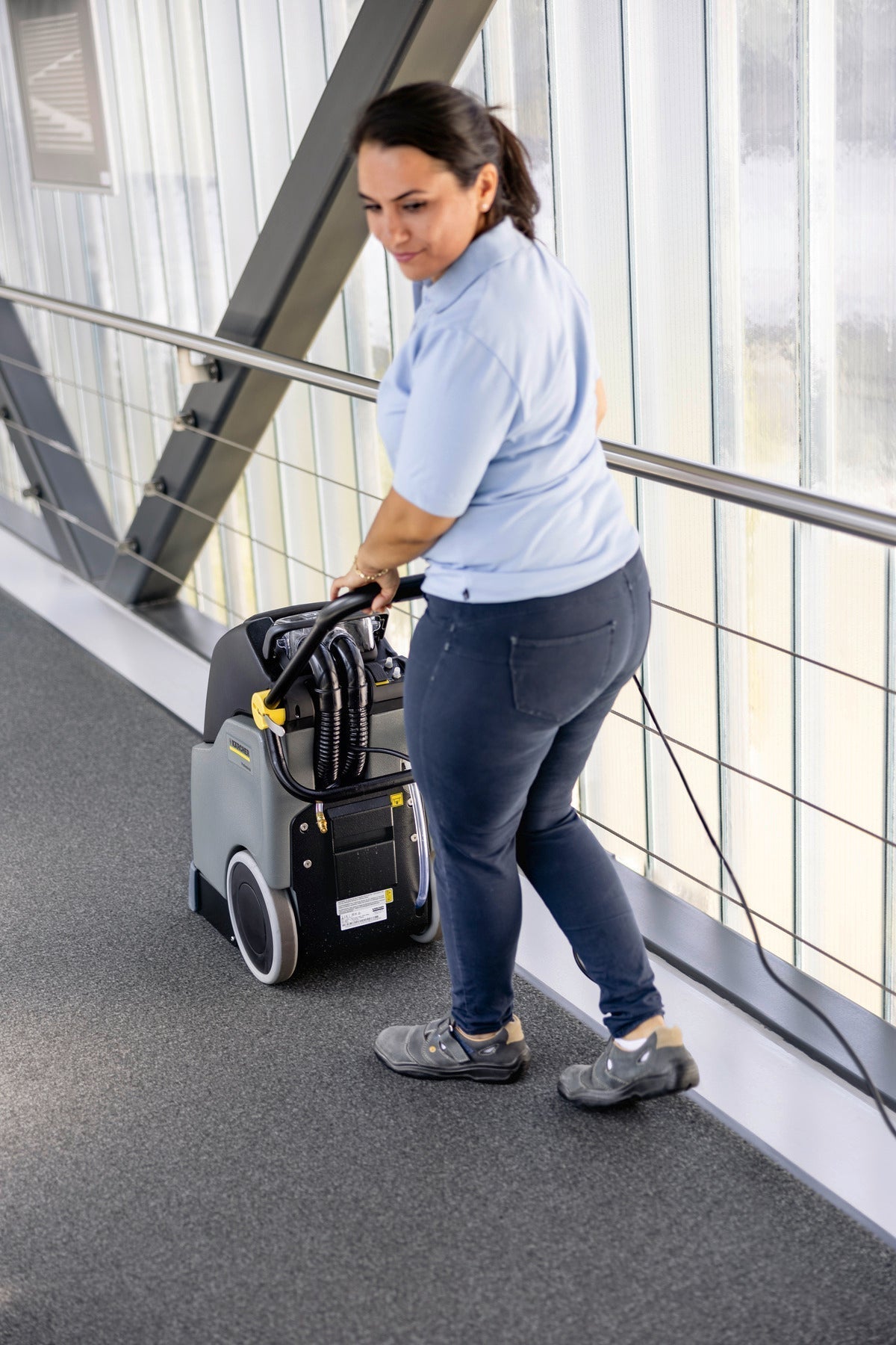 The BRC 30/15 C deep cleans carpeted surfaces quickly and effectively. The carpets are cleaned in depth by spray extraction with a rotating brush, and they dry quickly again thanks to the high suction power.
