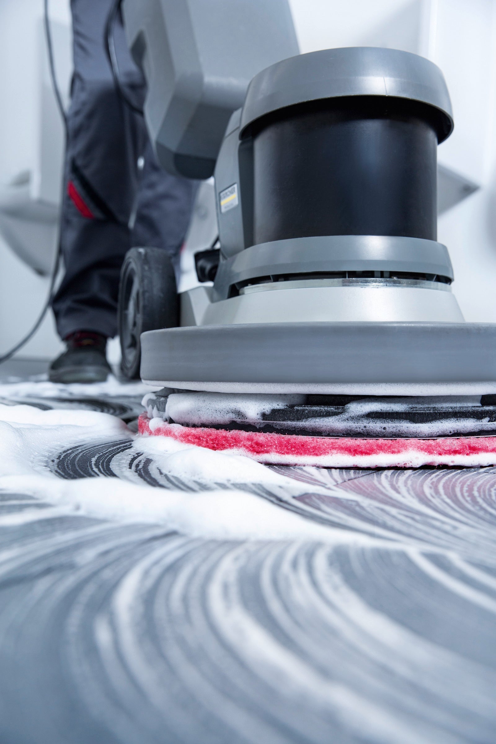 The versatile two-speed single scrubber BDS 43/DUO C is suitable for cleaning, polishing and grinding various floor types. It has a very stable operation at both 150 and 300 rpm.