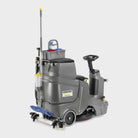 Thanks to its slim, compact design, our battery-powered BD 50/70 R Bp Pack Classic ride-on scrubber dryer with flat brush technology is extremely easy to manoeuvre and transport, even in lifts. As a result, this affordable basic model, powered by powerful 105 Ah batteries, is a real alternative to conventional walk-behind machines. Batteries and a suitable battery charger are included. It is easy to use thanks to colour-coded controls. This, together with many other clever, useful details, makes it a winning product. The standard Home Base for transporting manual cleaning tools can be equipped with hooks in this way. In addition, a waste bag holder and a dust mop are available as optional accessories.