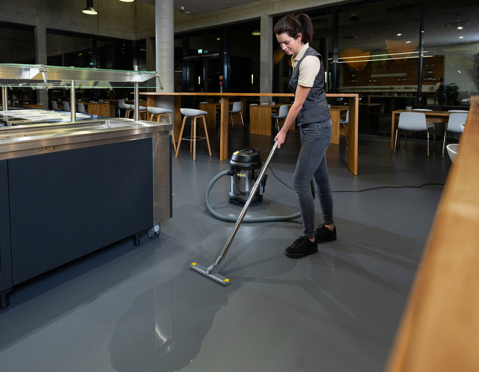 The NT 27/1 Me is a robust wet and dry vacuum cleaner with a large stainless steel container for commercial users. Wet and dry nozzle and crevice nozzle included.
