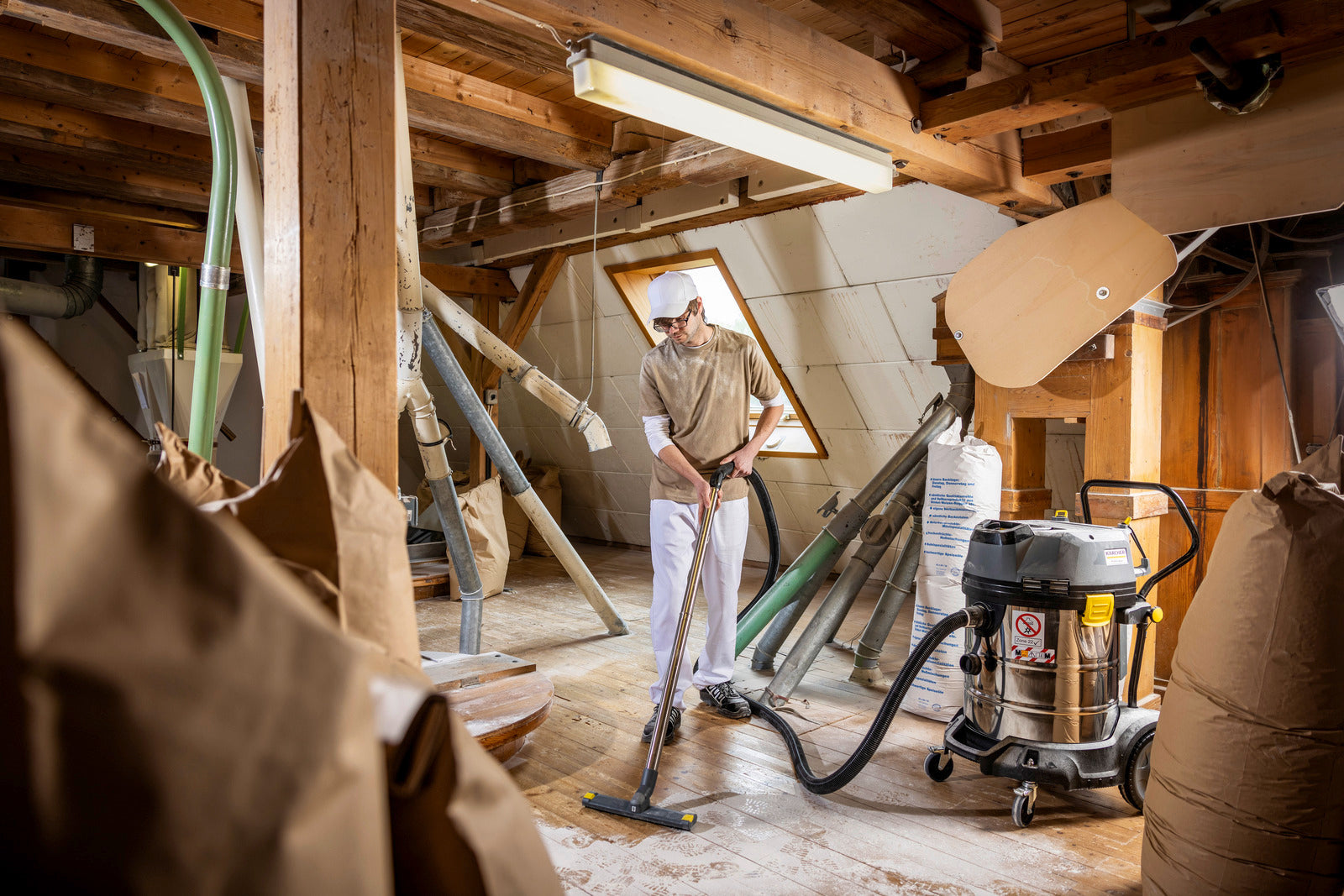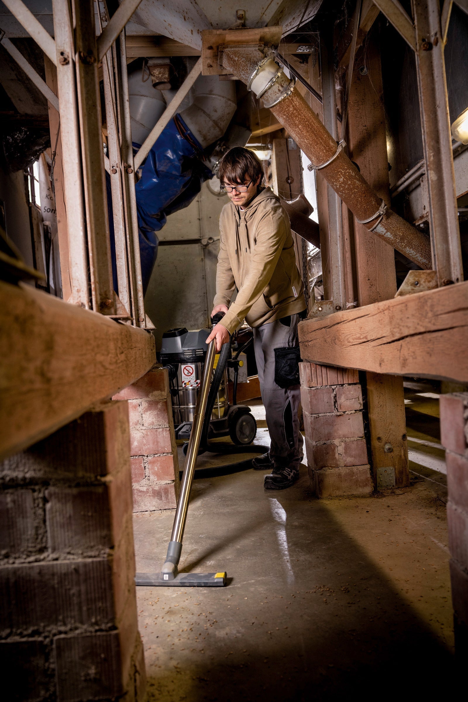 Certified according to the EU-binding ATEX Directive 2014/34/EU by the independent and reputable testing institute IBExU, the NT 75/1 Me Ec H Z22 vacuum cleaner is suitable for the elimination of combustible and other dusts of dust class M in explosive areas classified as zone 22. The brushless EC motor guarantees a service life of 5,000 hours. The fully earthed design and the associated conductive accessories are effective in preventing electrostatic discharge. Thanks to the 75-liter stainless steel container and the robust chassis with adjustable handle, large amounts of dust, coarse dirt or liquids can be easily removed from the danger zone before being safely disposed of. The NT 75/1 Me Ec M Z22 has a flat filter for dust class M, which guarantees a dust retention level of 99.9 percent and is also suitable for vacuuming liquids. This wet and dry vacuum cleaner is also suitable and approved for use without a filter bag or waste bag, if necessary - for this, the optional Candle filter should be used, which is specially developed to suck up fibrous dust without a vacuum cleaner bag.