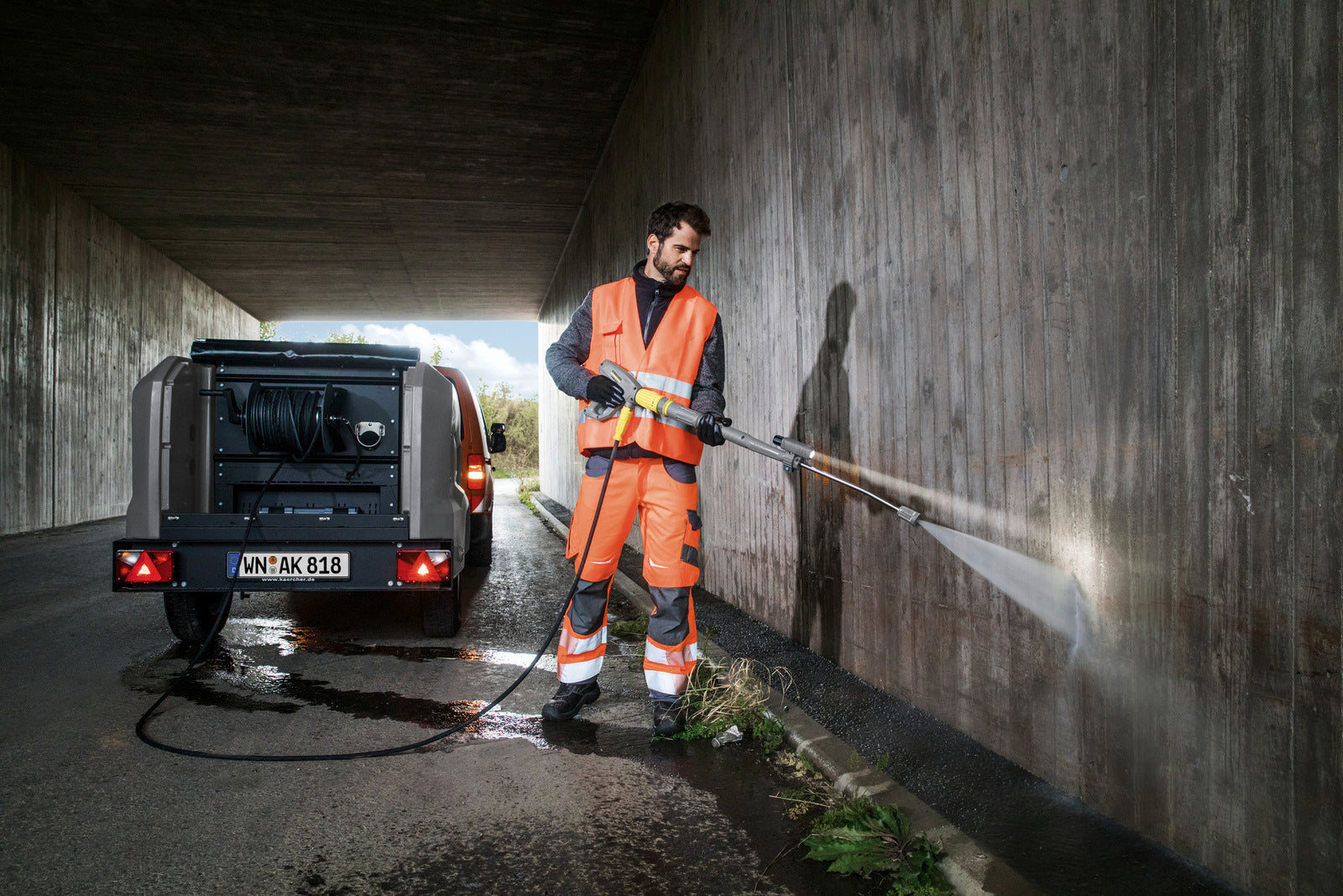 - Mobile high-pressure cleaning in municipal operations, e.g. in parks