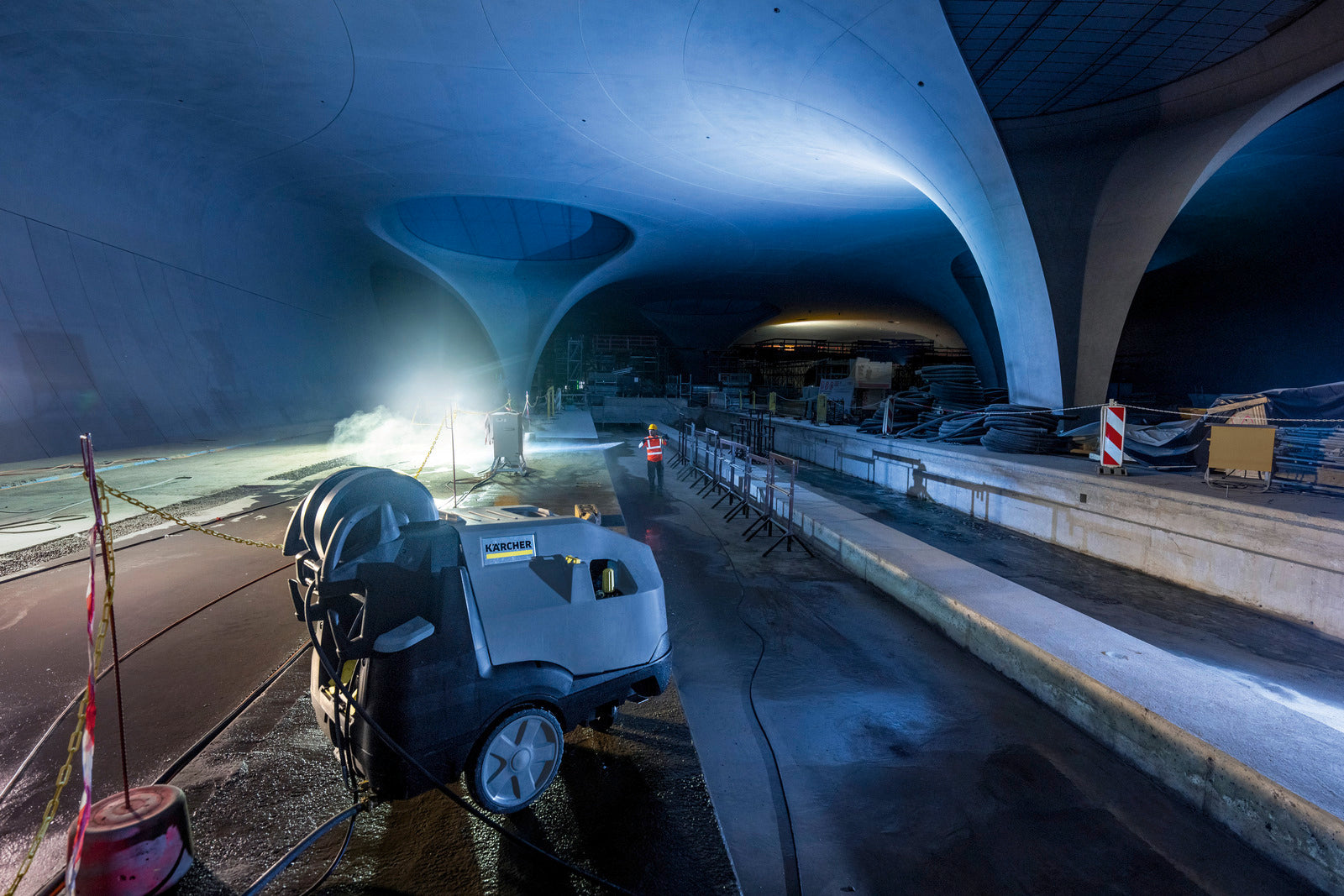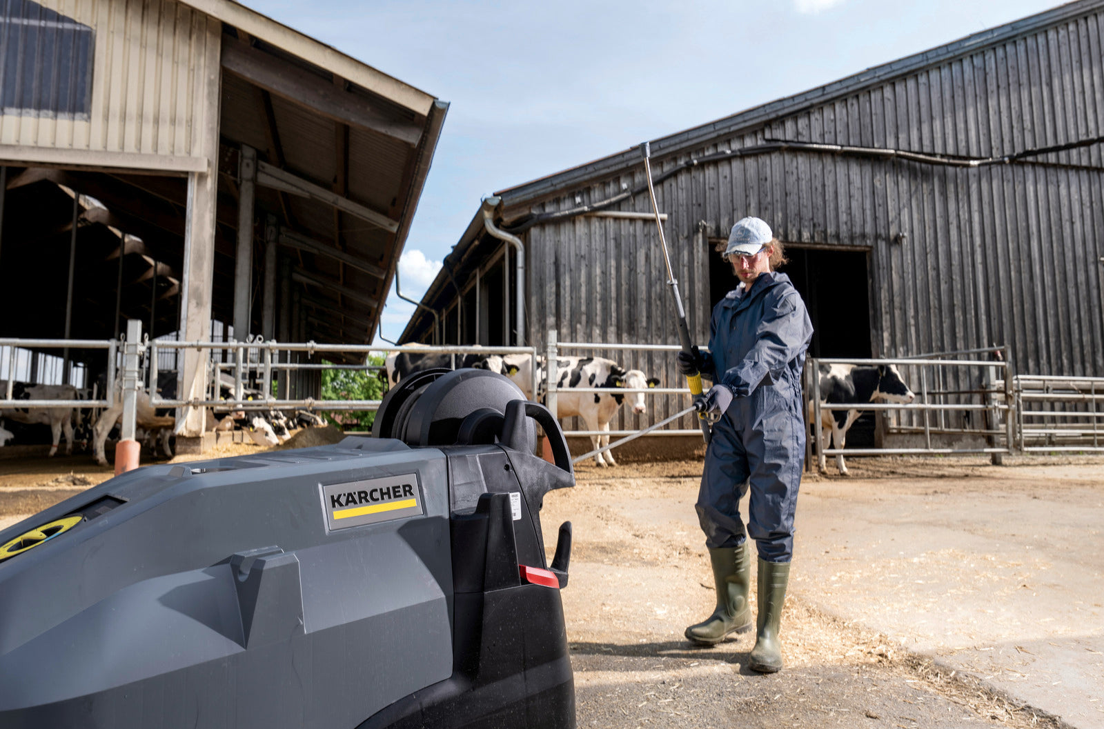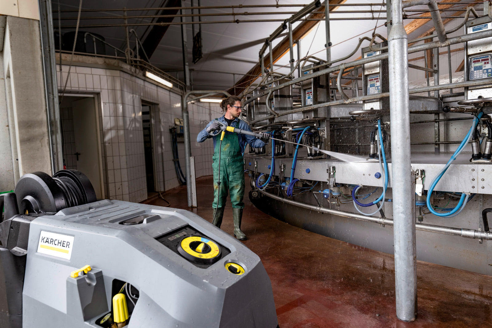 Super class hot water high pressure washer: with automatic hose reel as standard, including 20 m Teflon-coated Ultra Guard HP hose and 2 detergent tanks.