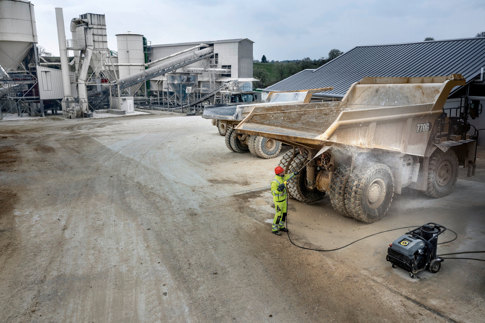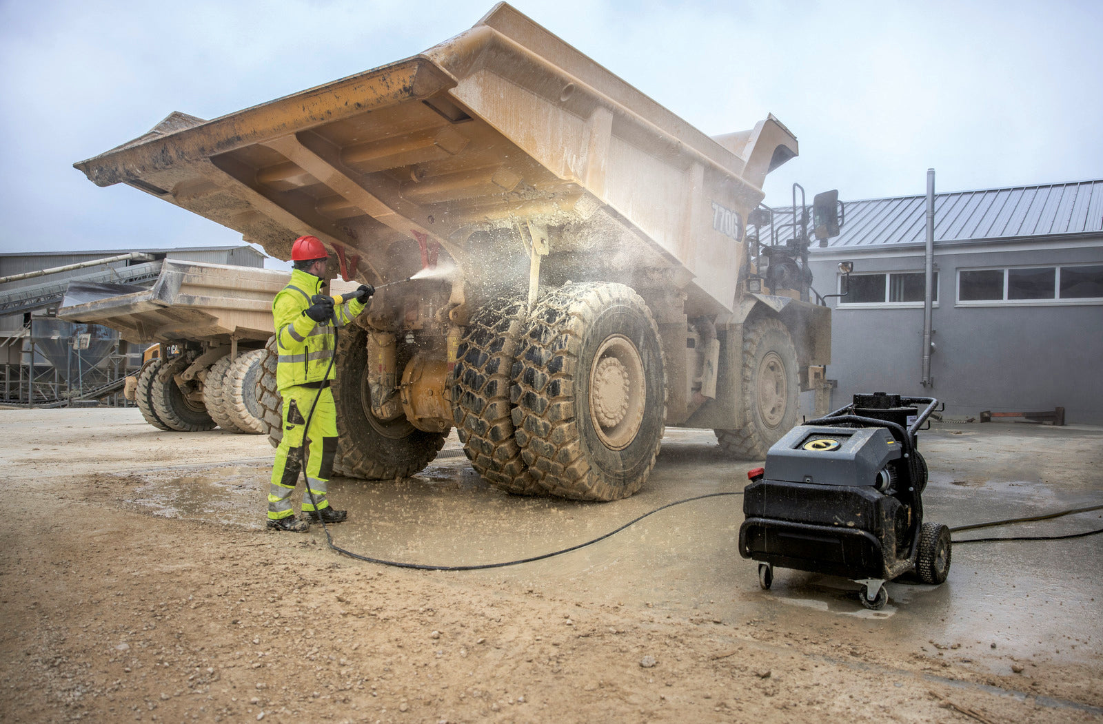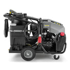 The mobile hot water washer offers a very high flushing capacity of 1800 l/h and enables the parallel use of two spray lances at a water pressure of 180 bar.