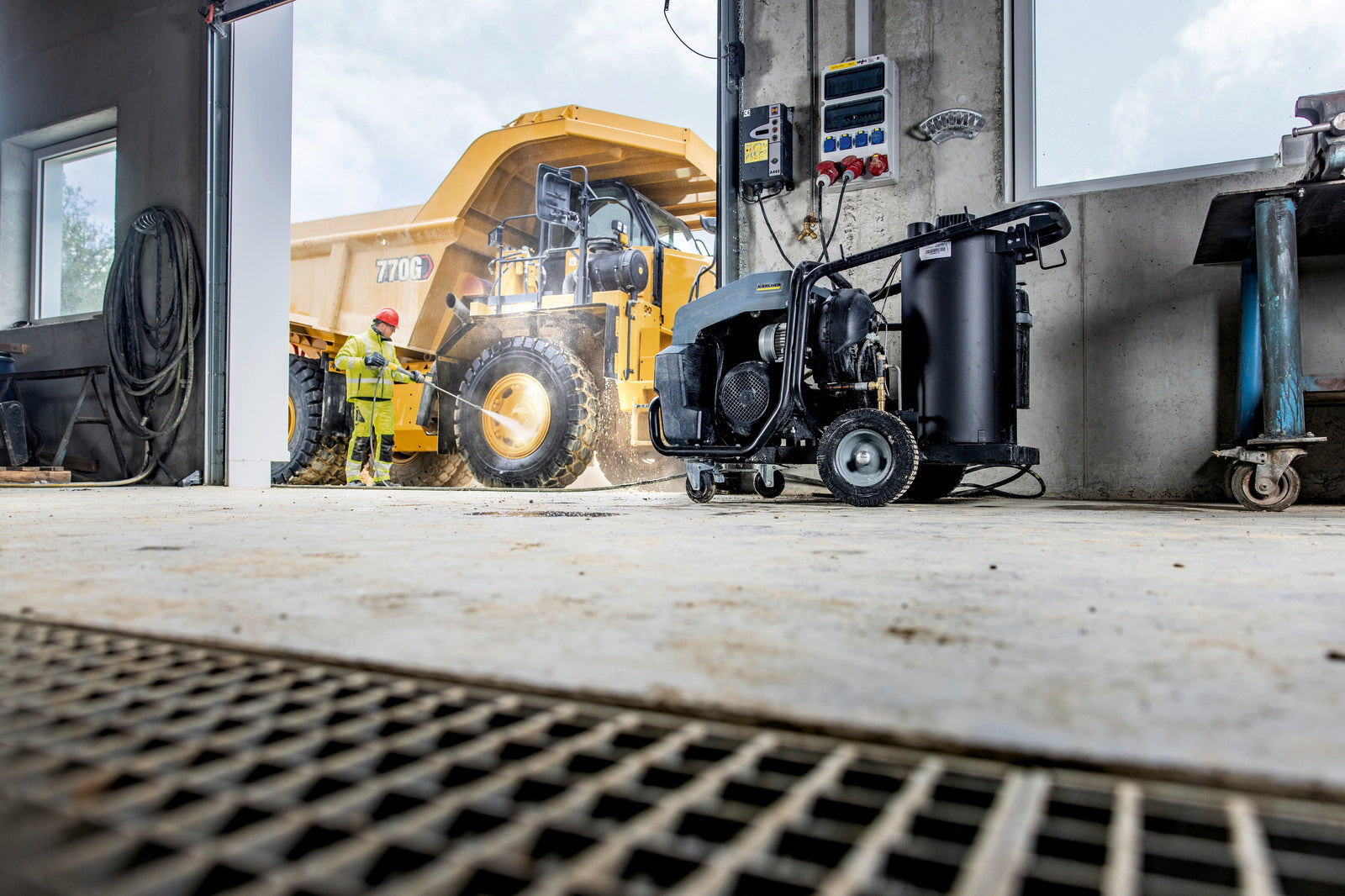 Robust crankshaft pump in proven Kärcher quality. A robust steel tube frame protects the machine from damage. Good accessibility for easy service and maintenance