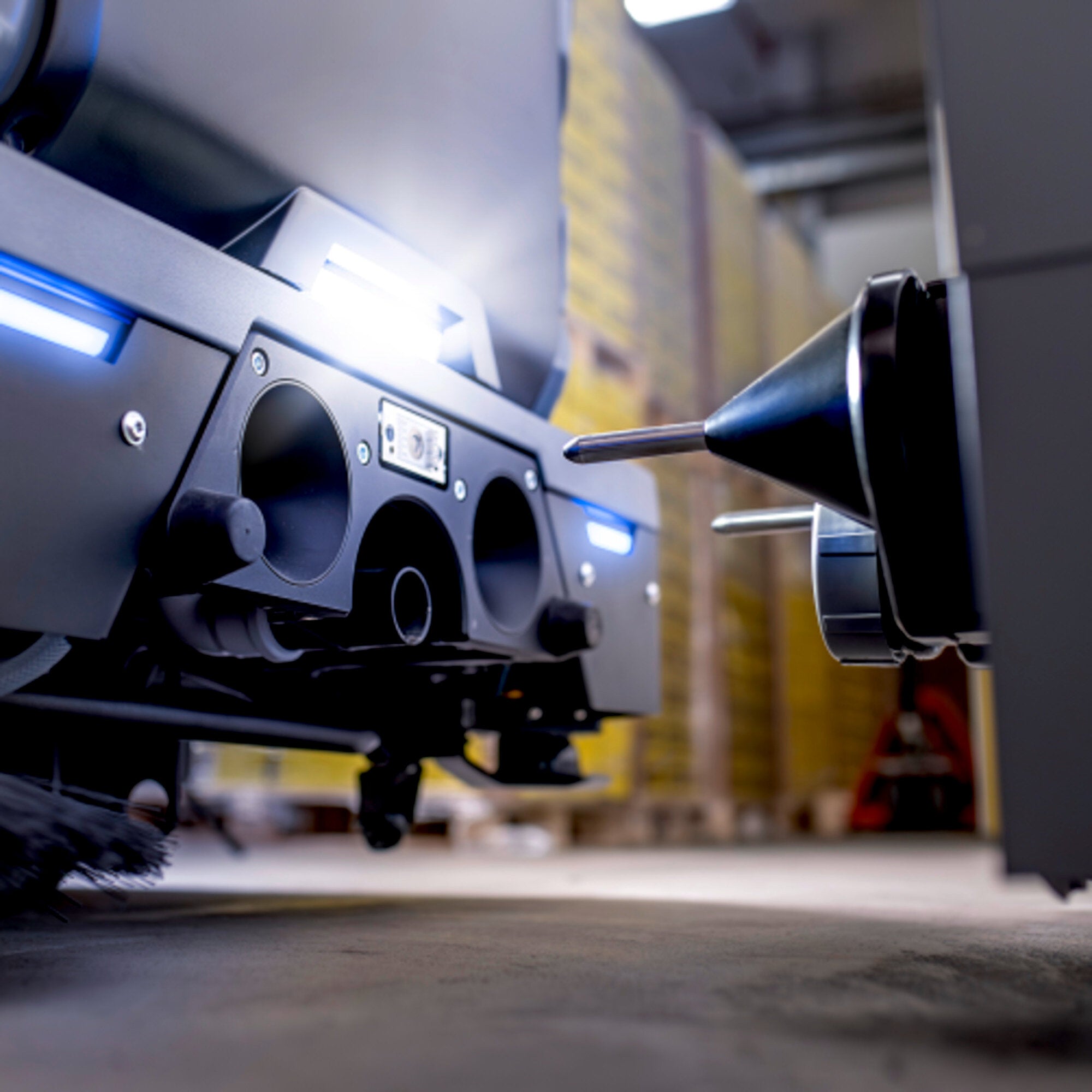 Enables fully autonomous use Resources can be replenished autonomously by a robot (filling with clean water, emptying dirty water, rinsing the tank, charging the battery). Optional accessory, the robot can also be used without a docking station