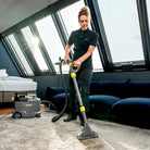 Thanks to its excellent suction power, the professional Puzzi 8/1 Adv from Kärcher provides a very good and hygienic cleaning result, while textile surfaces are quickly ready for use again. The machine sprays the cleaning solution deep into the textile fibers and then sucks it up together with the dissolved dirt - perfect for cleaning furniture, carpets and other textile surfaces. The robust and compact design provides a long service life and high cost-effectiveness - ideal for cleaning companies, the hotel and restaurant industry or for cleaning vehicle interiors, for example. The machine's lid, furniture nozzle and floor nozzle are transparent to provide better visibility into the dirty water. An inspection window in the handle provides additional control options. Puzzi The 8/1 Adv is lightweight and has an ergonomic carrying handle that makes it easy to carry with one hand. Large buttons that can be operated with hand or foot further increase user-friendliness.