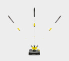 EB 30/1 Li-Ion has a foot-operated switch. The unit is only 90 mm high, making it low enough to reach under elements and furniture. It picks up loose dirt as close as 2 mm from the edges. The telescopic handle has a push handle and can be adjusted to the user's height, it is also articulated and can be rotated in all directions. The handle locks in a vertical position when not in use. The electric sweeper has a running time of approximately 30 minutes on carpets and 45 minutes on hard floors before the powerful nickel-cadmium battery needs to be charged. The charging time can be reduced from three hours to 90 minutes using the optional quick charger. Batteries can be changed to allow for uninterrupted use. No tools are required to change the batteries or remove the brush roller. Any hair that gets wrapped around the brush can be removed by cutting with a knife along a slot provided.