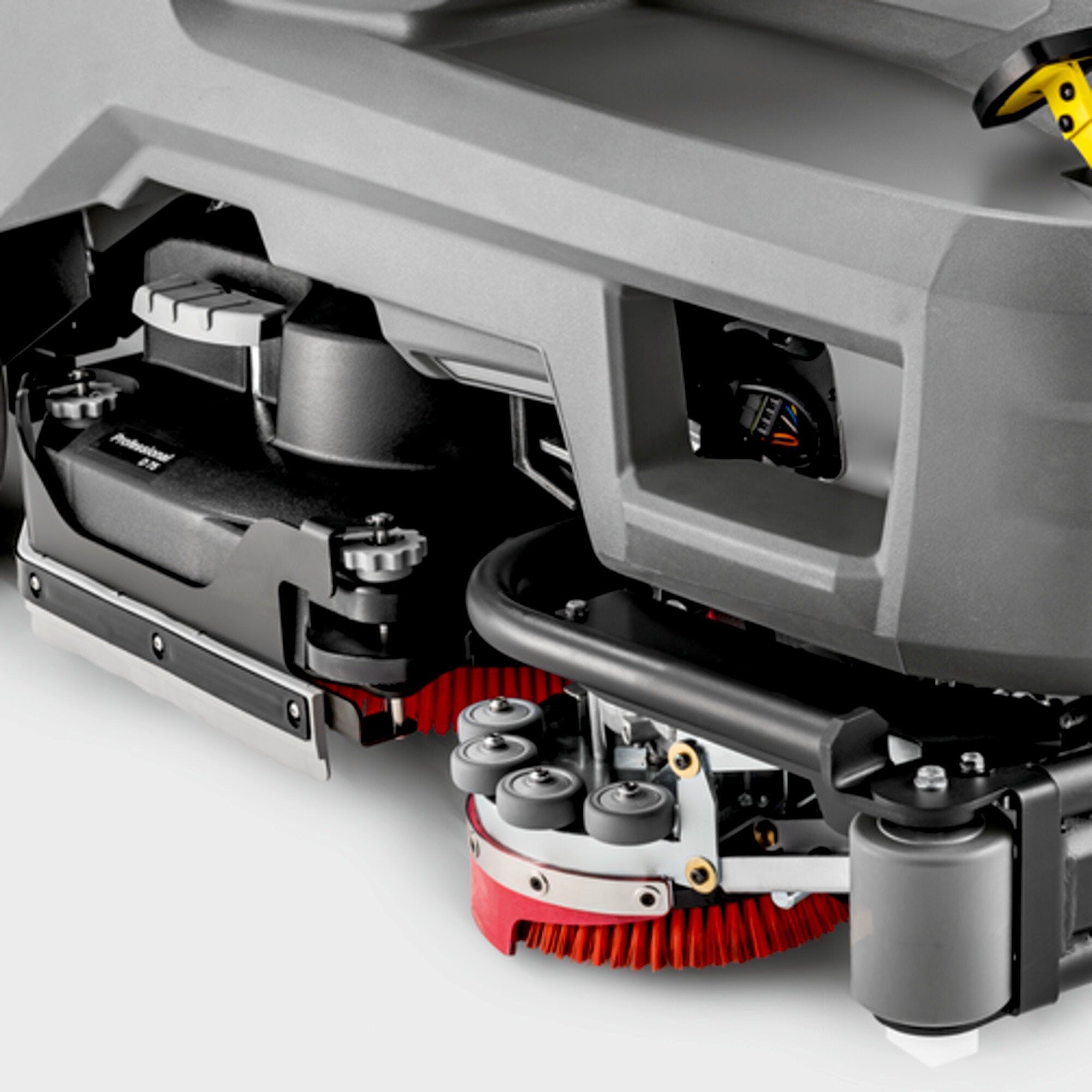 Möjliggör rengöring utmed väggar, hyllplan samt kanter. Flexar in under maskinen vid kontakt med hinder och undviker därmed skador. Kostnadsbesparande genom att undvika manuellt extraarbete vid kantytor.