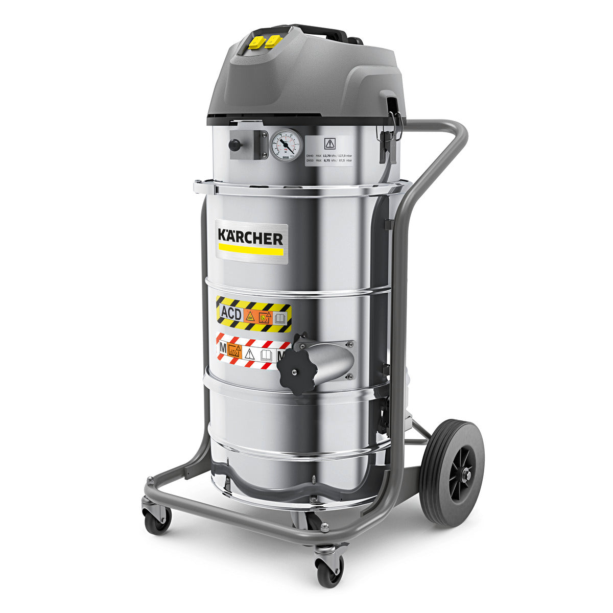 Slitstark, robust, kompakt, mobil: vår IVM 40/24-2 M ACD dubbelmotorig industridammsugare i medelklass för universell dammsugning av fina och grova brännbara fasta ämnen utanför en ATEX-zon. Den pålitliga maskinen arbetar i enfasdrift och båda motorerna kan styras individuellt. Det stora, certifierade stjärnfiltret av dammklass M kan rengöras enkelt, bekvämt och tillförlitligt med hjälp av Pull and Clean-filterrengöringssystemet utan att stänga av dammsugaren. Certifierad Industridammsugarens filter och uppsamlingstankar är tillverkade av syrabeständigt rostfritt stål, medan chassit är tillverkat av slitstarkt stål och har stora hjul för enkel transport.