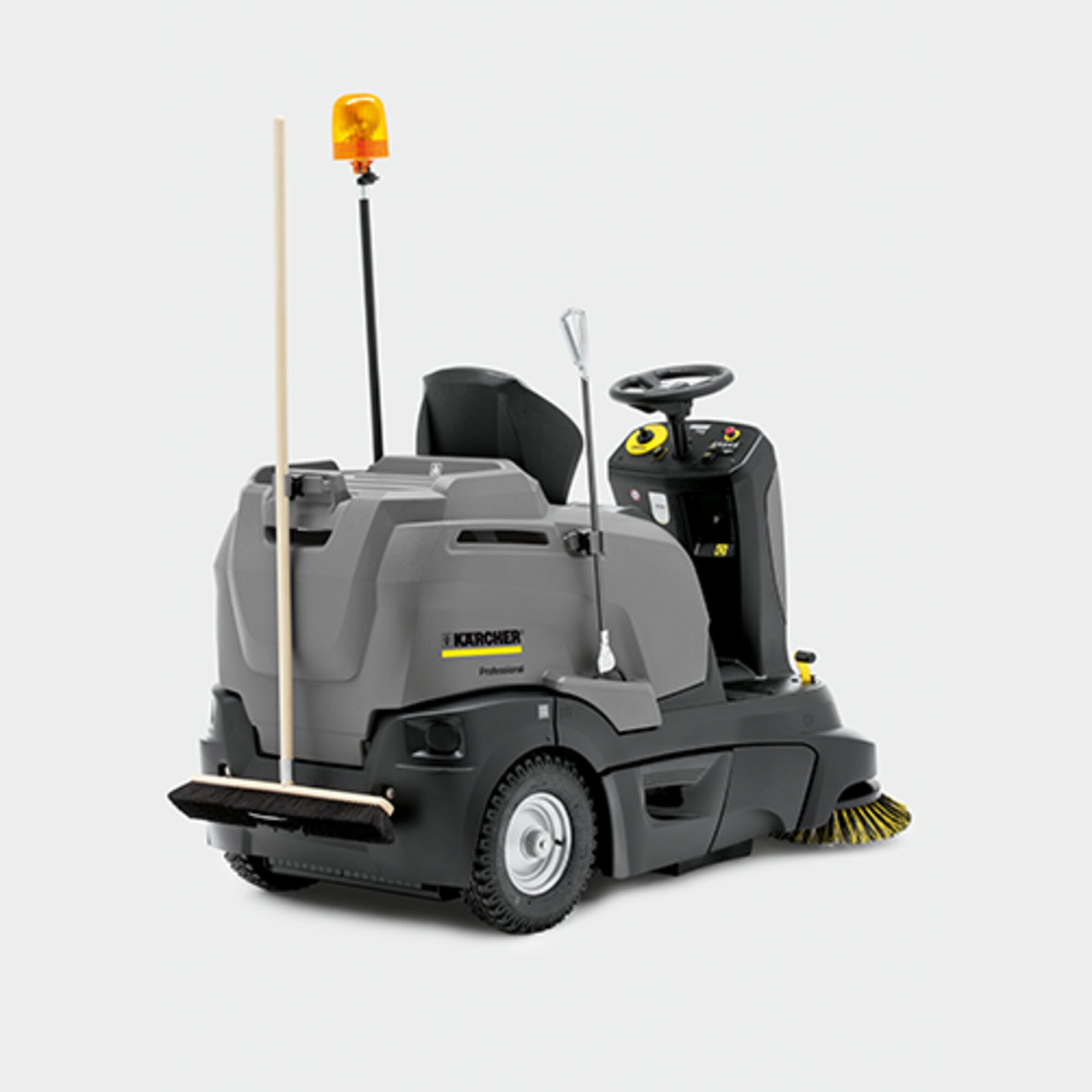 Vår batteridrivna KM 90/60 Bp Pack åkbara sopmaskin med sidoborstar imponerar med sin flexibla rörlighet och manöverbarhet för helt utsläppsfri rengöring i inomhus och utomhusytor såsom parkeringsytor, logistikcenter och produktionsanläggningar. Kraftfulla 180Ah batterier laddas enkelt med den inbyggda laddaren och garanterar lång drifttid. Modellen KM 90/60 Bp Pack är en barnlek att använda tack vare Kärchers EASY Operation system och har bra möjligheter för anpassning genom exempelvis vårt Home Base system där man kan koppla till fästen för tillbehör som kan behövas vid arbetet. Det unika och högeffektiva rundfiltersystemet gör arbetet dammfritt utan att tappa dammuppsugningsförmåga. Maskinen kan utrustas med Kärcher Fleet.