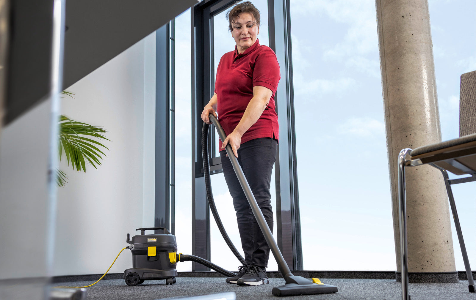 T 11/1 Classic Adv Re!Plast torrdammsugare från Kärcher imponerar med sin förstklassiga sugkraft, robusthet och utmärkta pris/prestanda-förhållande. Tack vare innehållet av 60 % återvunnet material* bevaras resurser redan från början och energiförbrukningen minskas. Trots den höga sugkraften arbetar maskinen med ett lågt ljudnivå på endast 61 dB(A), vilket gör den perfekt för ljudkänsliga miljöer. Dammsugaren har en kompakt design, är tippskyddad, har en behållarvolym på 11 liter, väger bara 4 kilogram och är utrustad med ett ergonomiskt bärhandtag och böj. Detta möjliggör långa, trötthetsfria arbetsperioder och bekväm transport. Den 12 meter långa, utbytbara anslutningskabeln kan lätt bytas av användaren när som helst. Det finns ett specialfack på själva dammsugaren för tillbehör som sugslang och golvmunstycke. Leveransen inkluderar även en fleecefilterpåse.